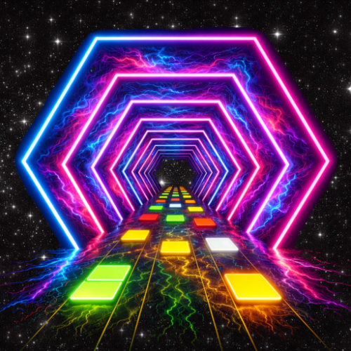 Music Tunnel is a high-energy VR rhythm game where music tiles move through a hexagonal tunnel around you.